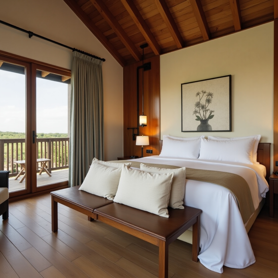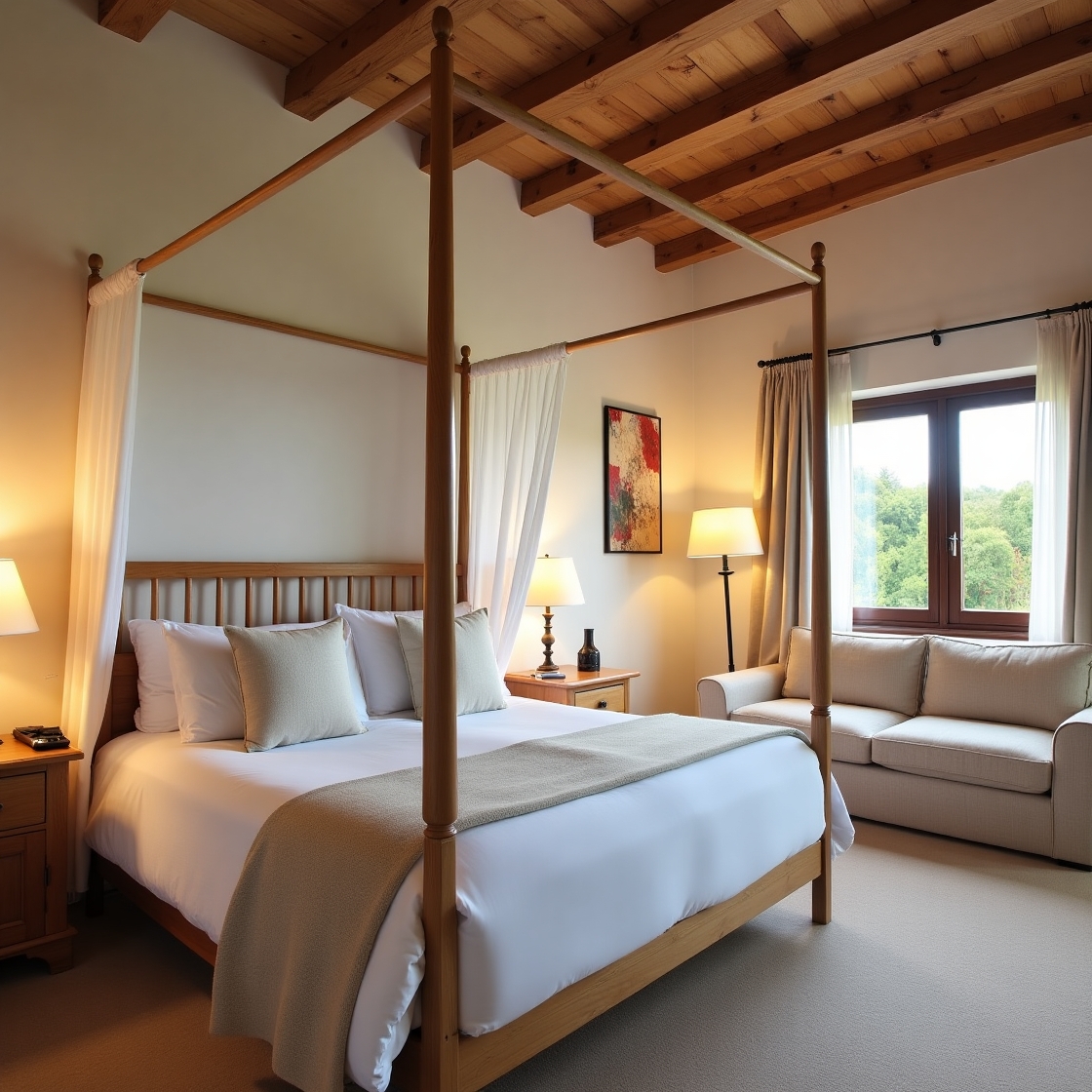 O Quarto Premium do nosso hotel rural oferece uma experiência de conforto e sofisticação em plena harmonia com a natureza, pensado para proporcionar uma experiência única no seu hotel rural. Este quarto destaca-se pelo seu espaço generoso, decoração rústica e acolhedora, e uma vista deslumbrante para a paisagem envolvente, ideal para quem procura tranquilidade e sofisticação.